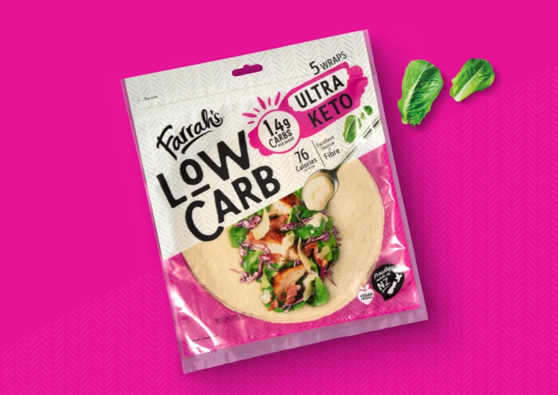 Having helped Farrah’s become a leader in the wraps category we know just how competitive the sector is. Amid an increasing focus by consumers on health and wellness choices in their shopping habits, Farrah’s looked to launch a Low Carb sub-range of wraps and tasked us with the design.